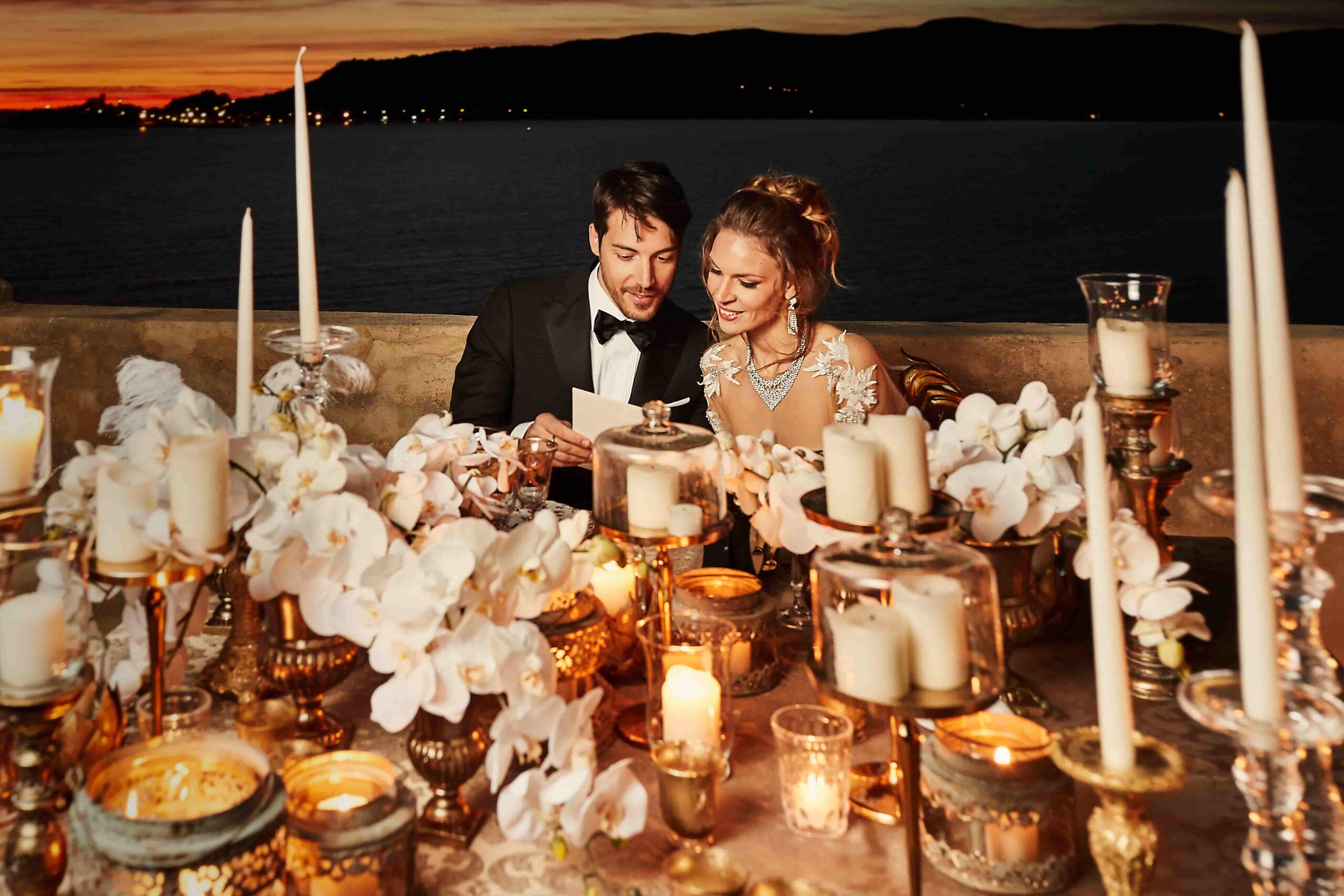Featured in Unveiled Magazine, the styled shoot was inspired by a scene from Quantum of Solace, the James Bond 007 movie, with the groom arriving to the venue on a boat with the backdrop of a breath-taking landscape and unreal atmosphere. The ultimate way to start the day in total bliss!