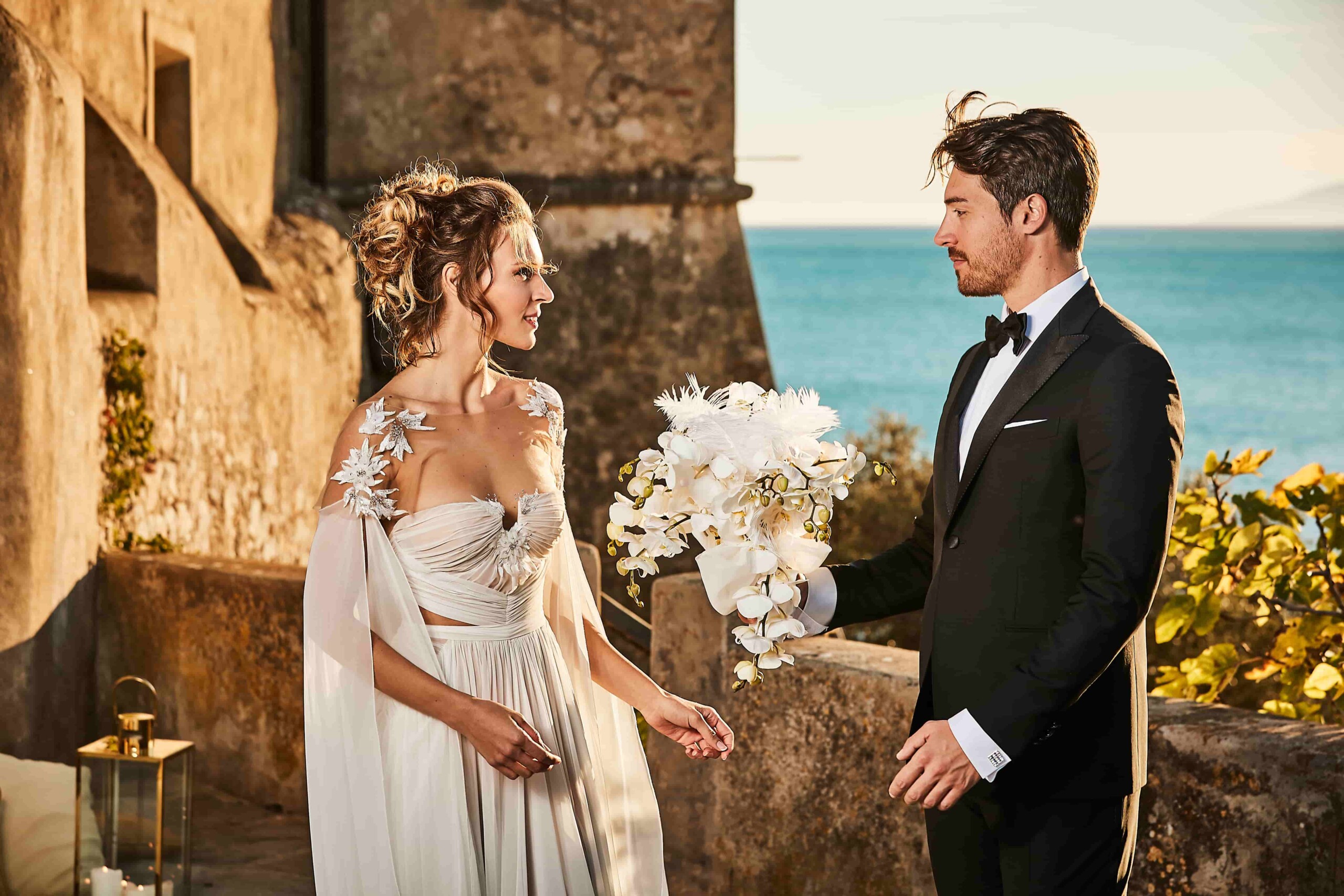 La Torre di Talamonaccio is the exclusive wedding venue that we chose for this elopement in Tuscany. Ideal for couples who wish to get married with an intimate gathering, it clings to the edge of a cliff and offers unrivaled views across the sea. If the views aren’t enough, the natural beauty and many historical sites of the surroundings will surely make your heart flutter.