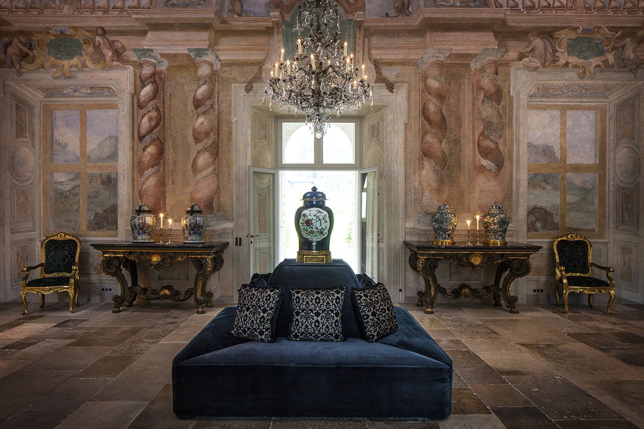 The interiors make it even more unique: marble floors combine with the original 17th Century frescoes, and with a collection of artworks, antiquities and furniture that turn Villa Balbiano into a place of timeless opulence and magnificence.